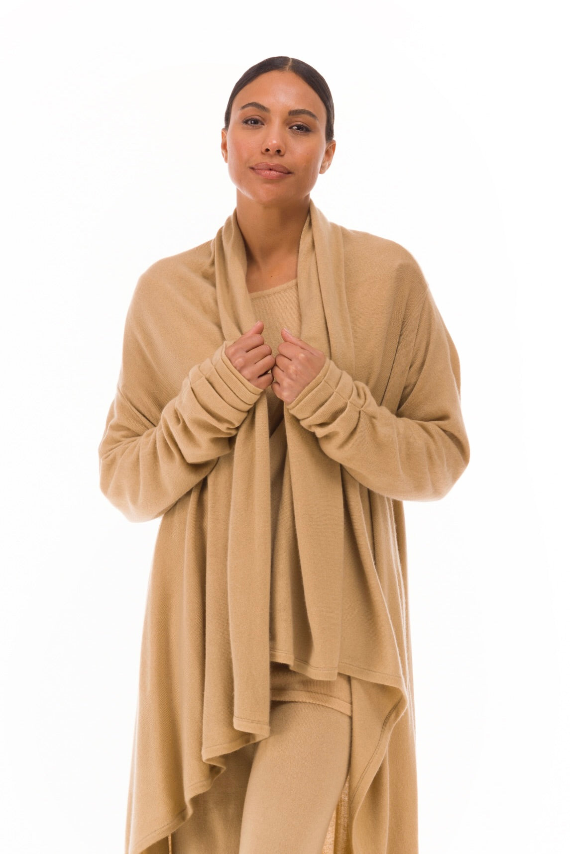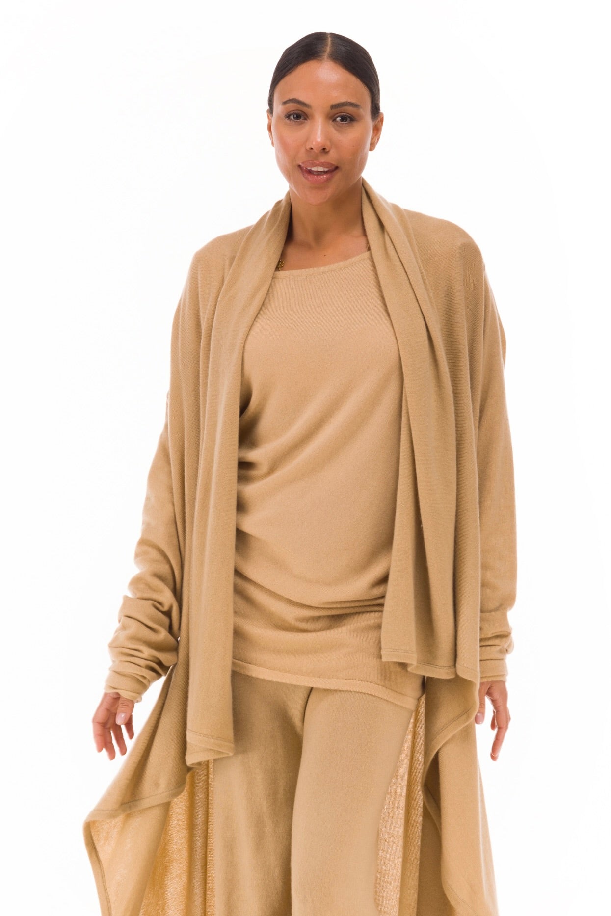 NEW 100% MONGOLIAN CASHMERE WATERFALL JACKET HONEY