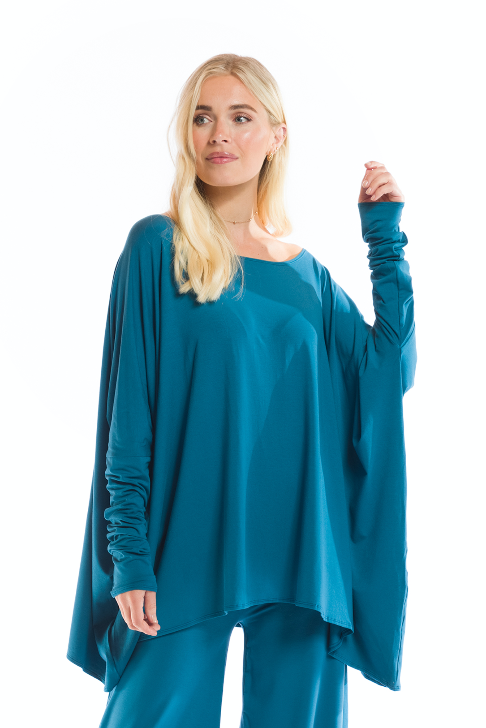 BAMBOO ANGEL WING SLEEVE DRESS TOP TEAL