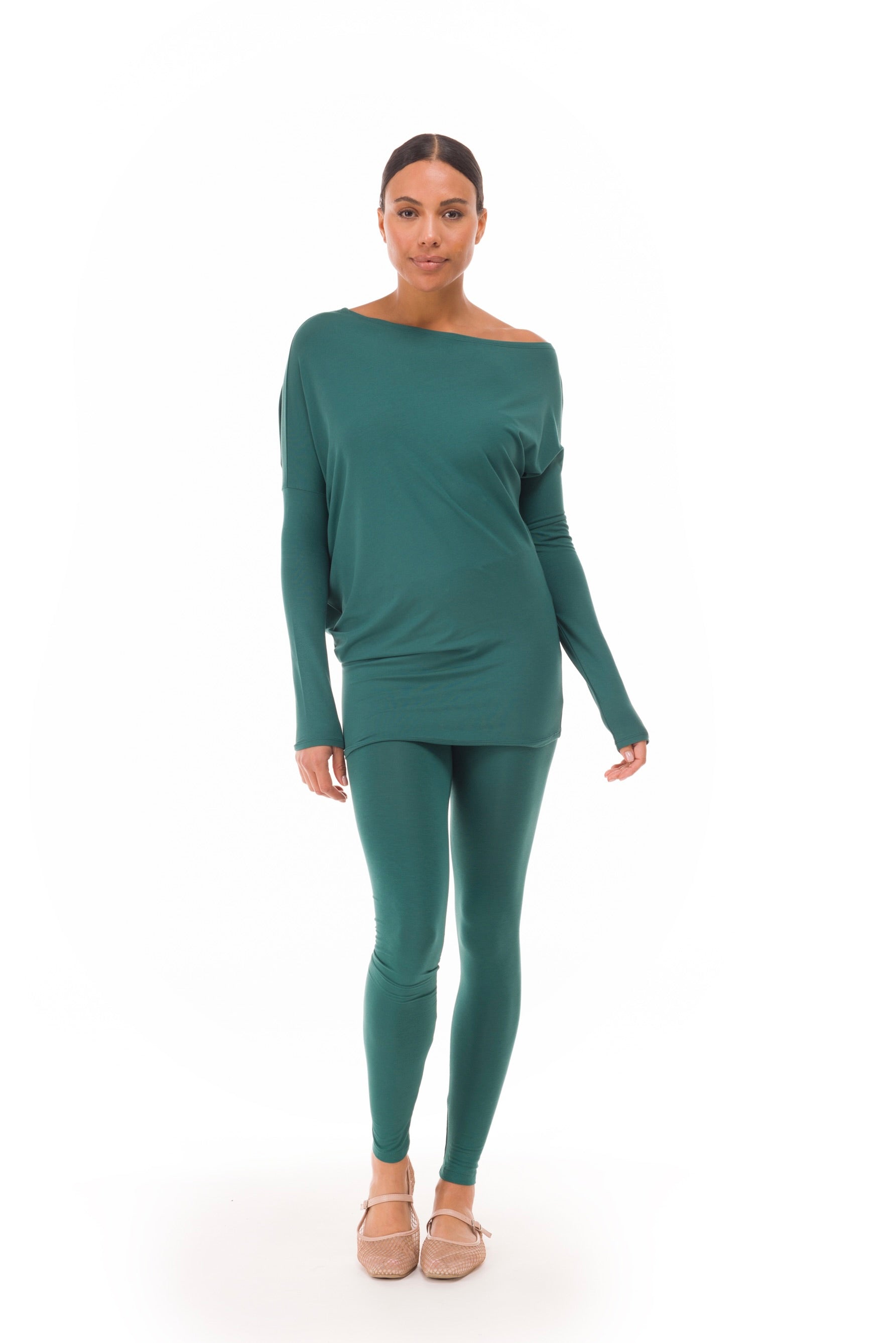 A beautifully crafted, asymmetrically cut top designed to drape effortlessly over the body, creating a flattering silhouette that complements every shape. The unique design subtly skims over curves, offering a relaxed yet sophisticated fit. Made from ultra-soft bamboo, this piece is as comfortable as it is elegant, making it an essential addition to any wardrobe.