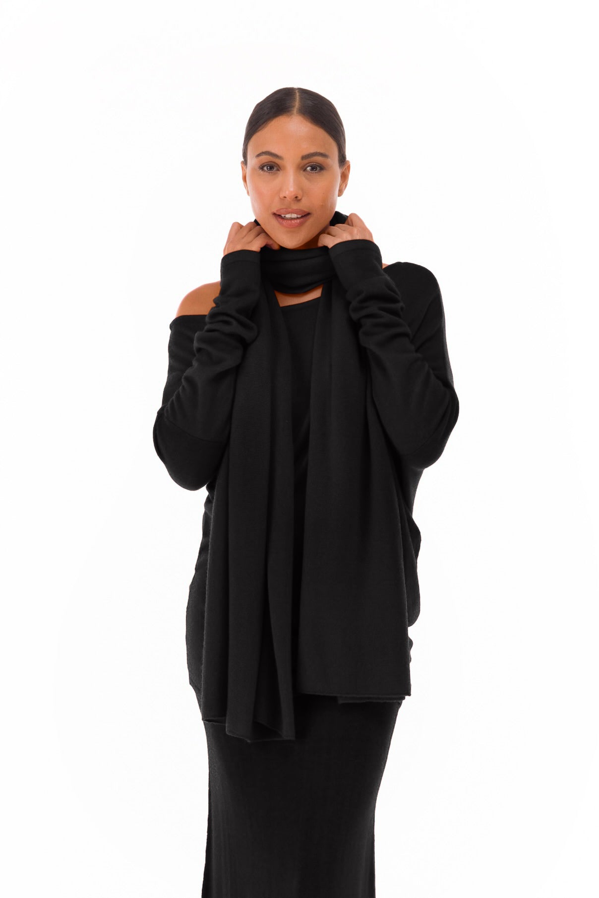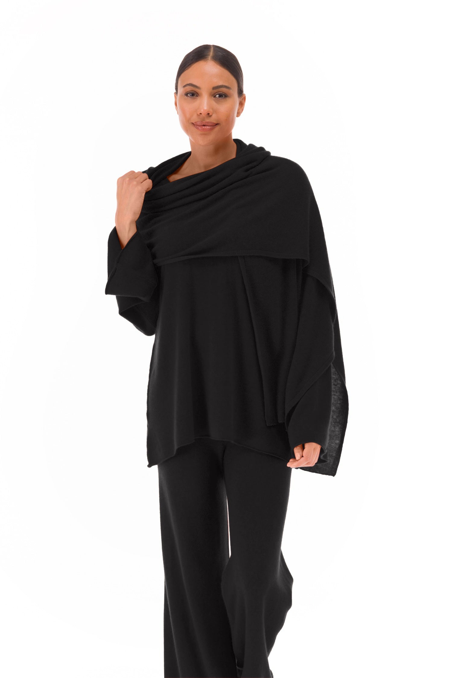 100% CASHMERE ULTRA FINE DRAPED SHRUG BLACK