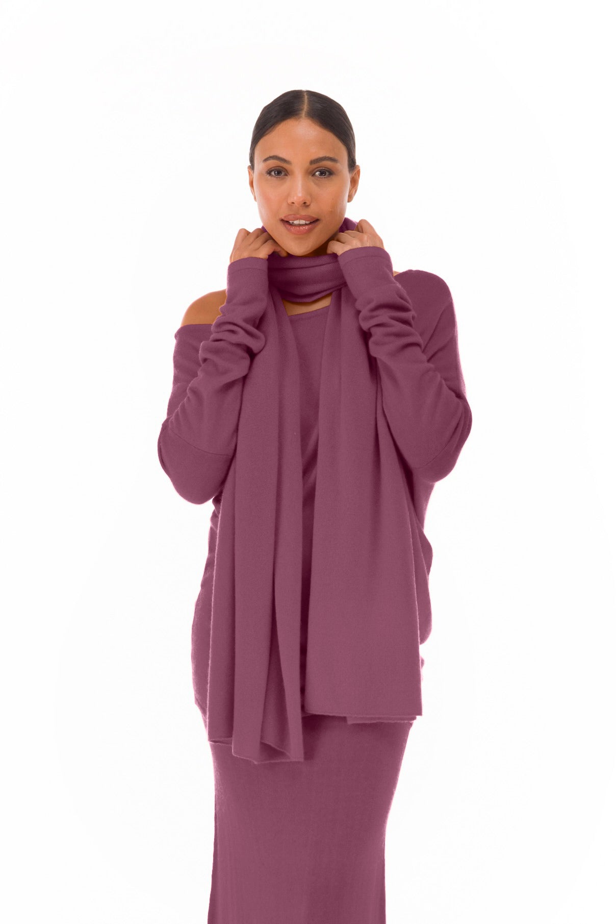 100% CASHMERE KNITTED SCARF AUBERGINE