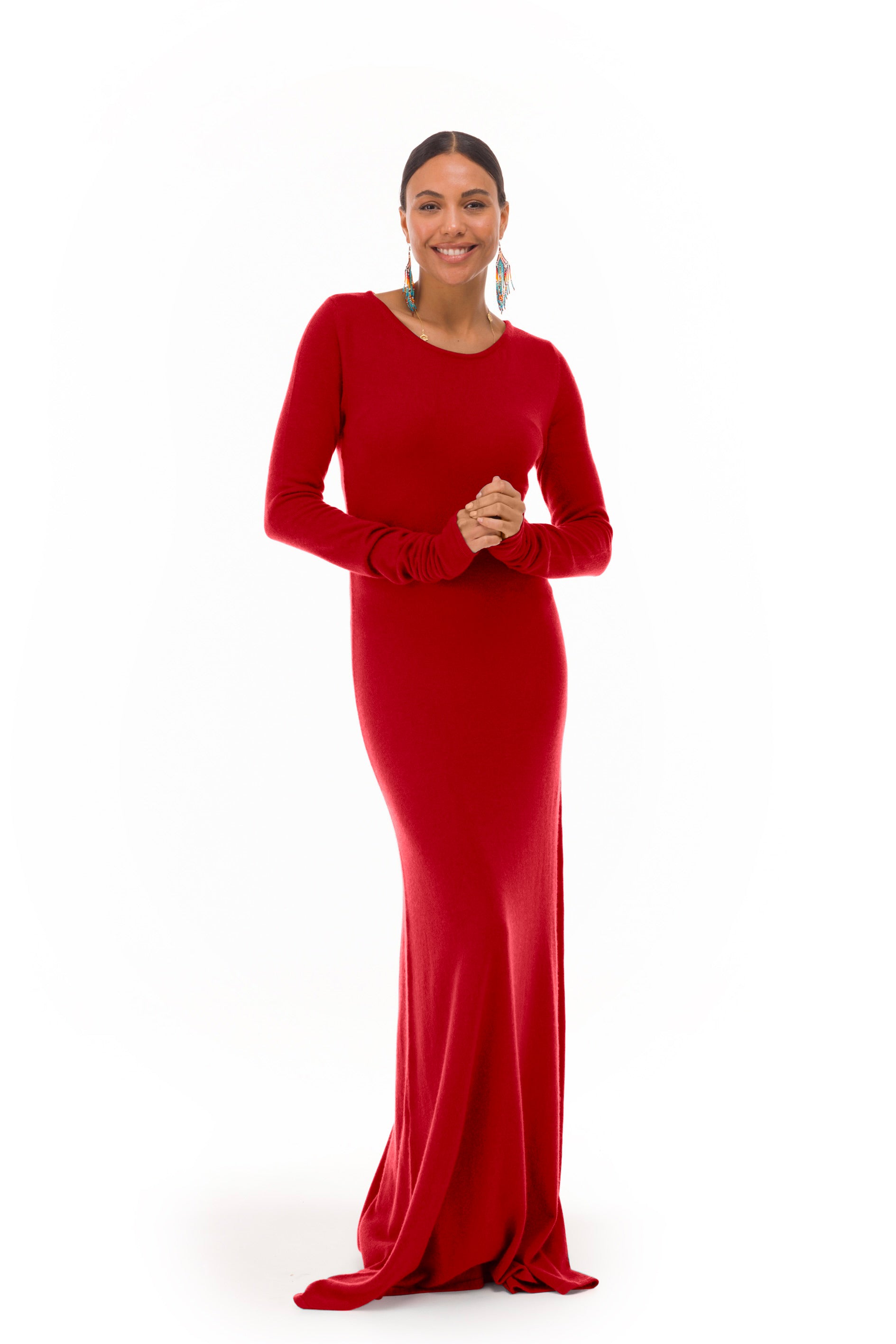 100% CASHMERE MAXI FITTED DRESS ROSEWOOD