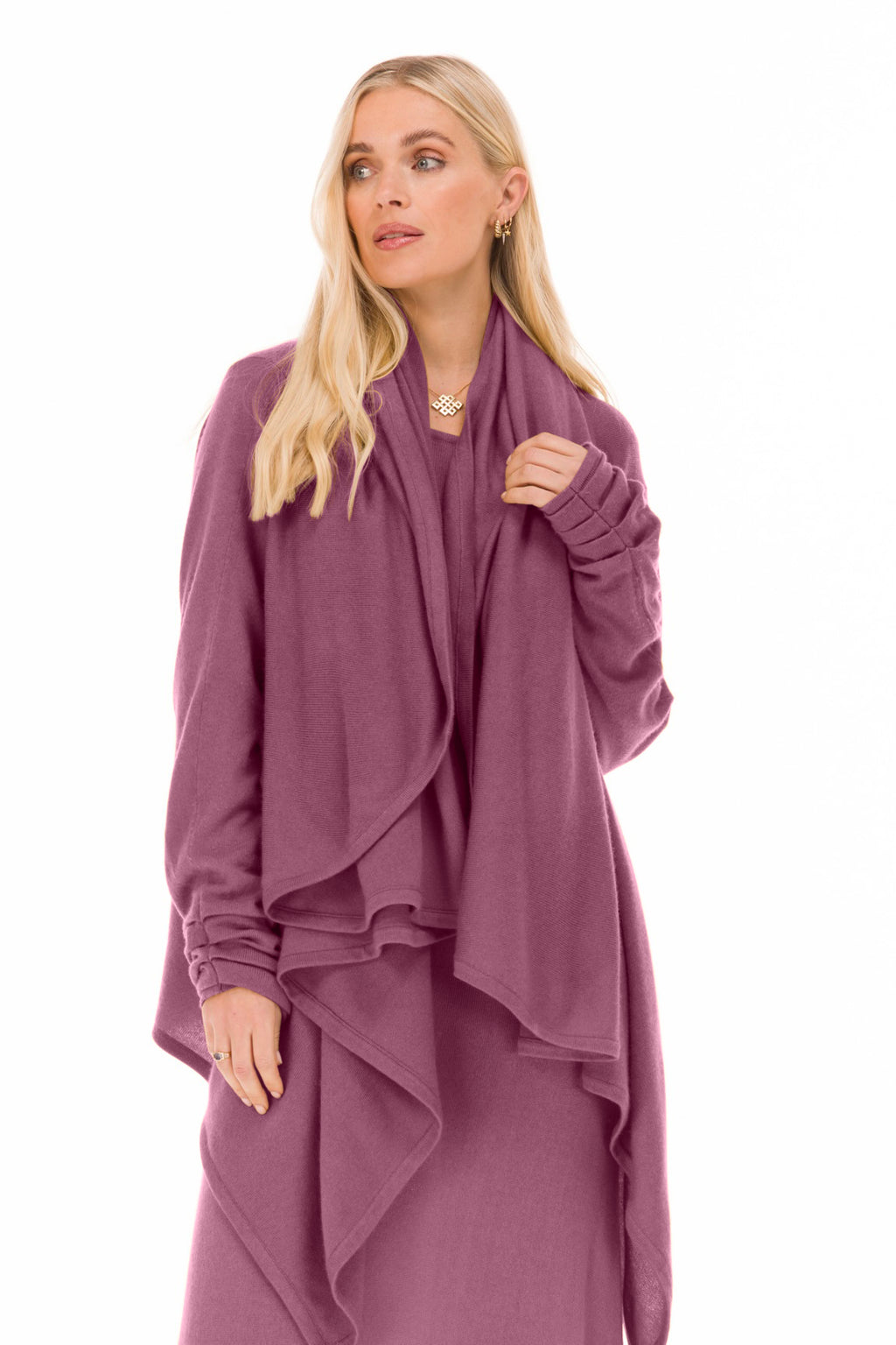 NEW 100% MONGOLIAN CASHMERE WATERFALL JACKET ROSEWOOD