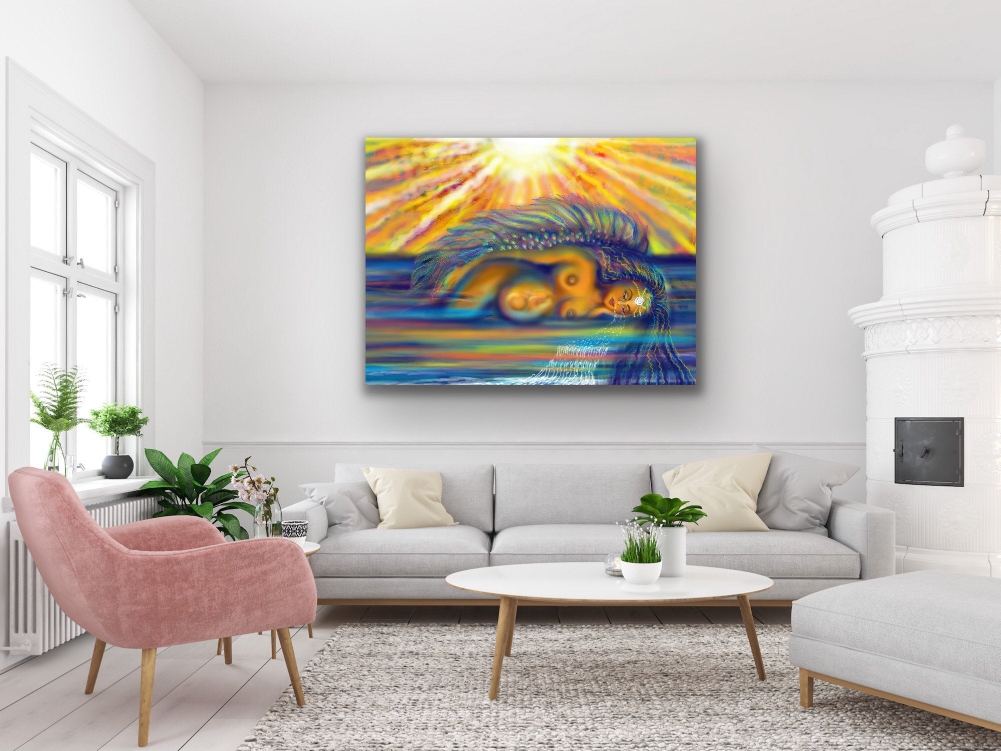 This painting depicts the mother in her solitude in her pregnancy, dissolved in the waters as she feels how Karma is created in matter.