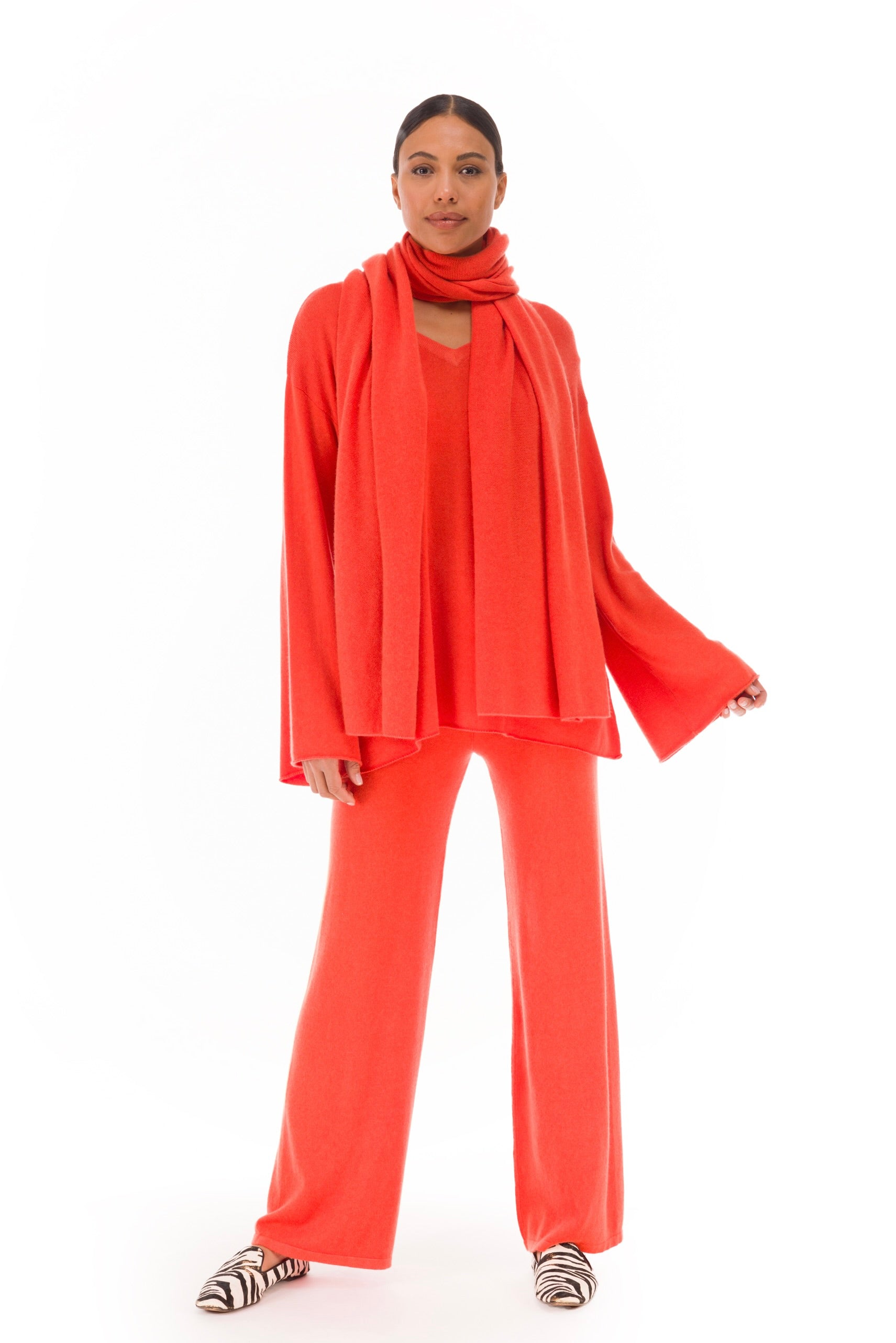 100% CASHMERE KNITTED SCARF ORANGE
