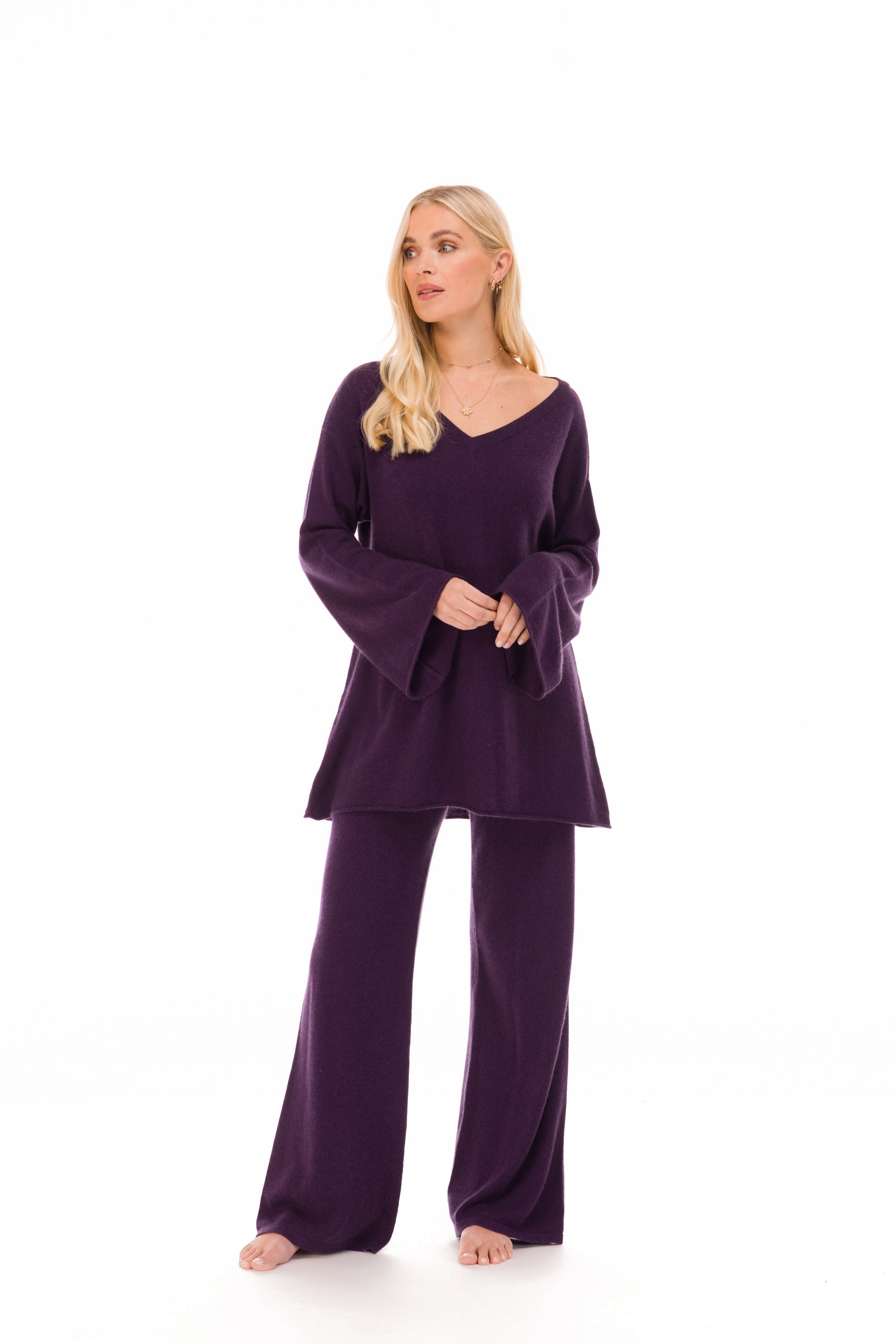 100% CASHMERE LOUNGE PANTS AUBERGINE